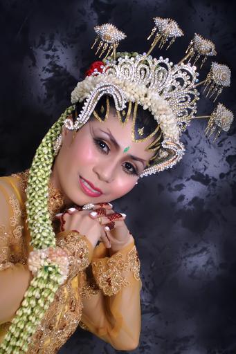 Keywords: woman bride traditional clothes wedding accessories happiness face make up javanese indonesia