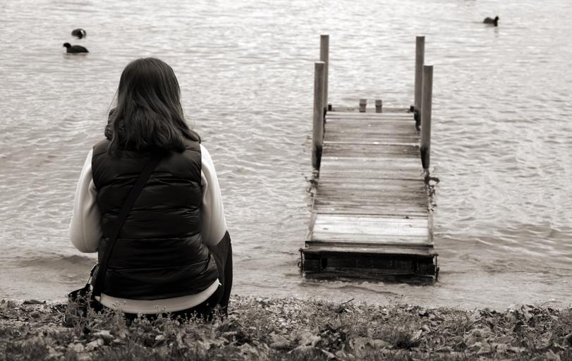 Keywords: woman girl human person individually wait look lonely click rest idyll sit alone thoughtful thinking