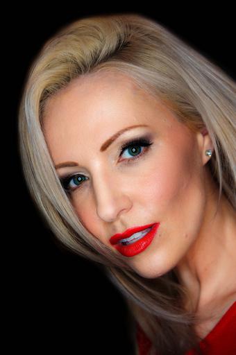 Keywords: woman portrait model professional female face sunning make up uk red lips blonde hair blondy beauty green eyes girl zara watson