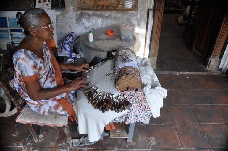 Keywords: woman sri embroidering embroidery tablecloth lanka