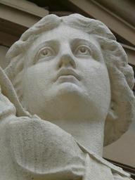 Keywords: woman statue fig gypsum white animal face portrait close chalk figure justizia