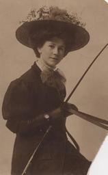 Keywords: portraits women people monochrome Photographer: Reuben R. Sallows (1855 - 1937) Description: Studio portrait of woman dressed in dark riding habit holding a riding crop and reins; three-quarters view, facing right; wears wide brimmed hat with flowers, light high-necked lace collar, dark gauze-like bow tie; dark leather gloves, watch on right wrist; Post card marking on back, addressed to Miss Lottie Green, 508 Fort Street, Port Huron, Mich message written Am just leaving for Bayfield, wish you were coming too, Florence Object ID : 0384-rrs-ogohc-ph View additional photographs by Sallows that are held in other collections at the Reuben R. Sallows Digital Library. Order a higher-quality version of this item by contacting the Huron County Museum (fee applies). Photographer: Reuben R. Sallows (1855 - 1937) Description: Studio portrait of woman dressed in dark riding habit holding a riding crop and reins; three-quarters view, facing right; wears wide brimmed hat with flowers, light high-necked lace collar, dark gauze-like bow tie; dark leather gloves, watch on right wrist; Post card marking on back, addressed to Miss Lottie Green, 508 Fort Street, Port Huron, Mich message written Am just leaving for Bayfield, wish you were coming too, Florence Object ID : 0384-rrs-ogohc-ph View additional photographs by Sallows that are held in other collections at the Reuben R. Sallows Digital Library. Order a higher-quality version of this item by contacting the Huron County Museum (fee applies). |