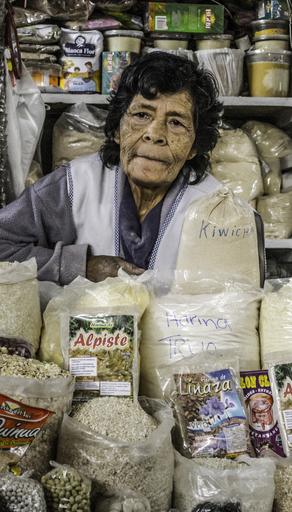 Keywords: woman vendor person old dried goods market seeds grains spices old woman