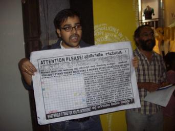 Keywords: 'Womans Day' being projected at Brigade Road (Bangalore).JPG en Womens Day atrocities being projected at Brigade Road by Activists Sunday 8-3-2009 Own Rudolph A furtado Sunday 8-3-2009 Demonstrations and protests in Bangalore Brigade Road Bangalore at night |