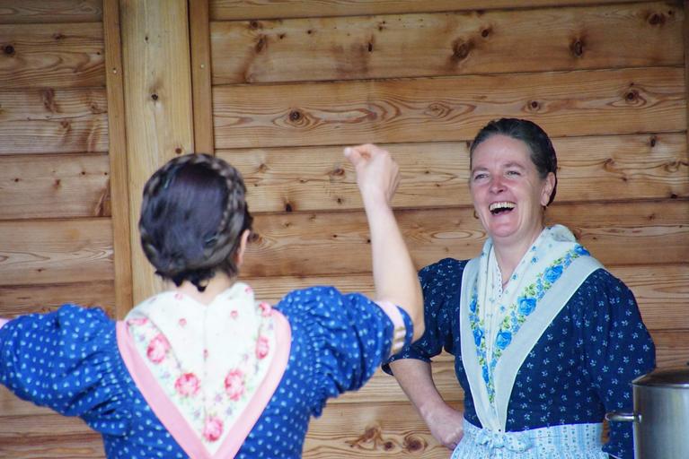 Keywords: women laugh dance cheerfulness positive i enjoy portrait ears italy rice mouth smile altoadige südtirol alps brunico woman hair costume wonderful stratospheric couple