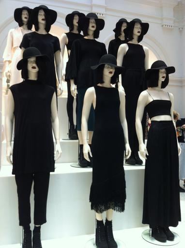 | Keywords: women model dummy mannequin fashion young female vogue black white uniform robots conformity hat black summer shop shopping display dark pose posing fashionable clothing glamour stylish caucasian lack of diversity uniformity model woman woman fashion |