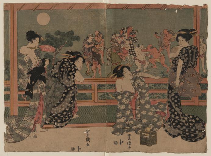 Keywords: Women watching a sumo match under a full moon (full).jpg Artwork Creator Utagawa Toyokuni II Print shows four women some with breasts exposed watching a group of men watching two men in a sumo wrestling match Full artwork between 1818 1825 1 print 2 sheets woodcut color Institution Library of Congress object history exhibition history credit line jpd 00684 Original file from LOC converted from tif to jpg using XnView to fit under 100 MB accession number PD-old-auto-1923 1835 Related <gallery> Women watching a sumo match under a full moon left panel jpg Left panel Women watching a sumo match under a full moon right panel jpg Right panel </gallery> Utagawa Toyokuni II Ukiyo-e of sumo wrestlers |