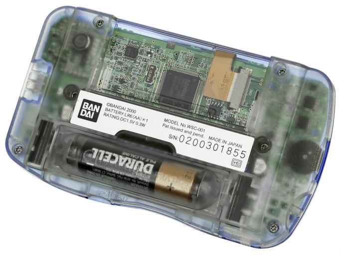 Keywords: WonderSwan-Color-Back-wBattery.jpg The back of a WonderSwan Color handheld gaming console The console uses a single AA battery for power and is quoted at 20 hours of battery life own 2014-05-25 Evan-Amos User Evan-Amos/EABanner Taken with Nikon D7100 Electronic devices on white background WonderSwan AA batteries Handheld game console motherboards |