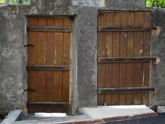 Keywords: wood doors goal wooden door wrought iron old gate old door door wood stone wall