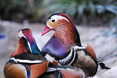 Keywords: wood ducks birds zoo wildlife waterfowl colorful nature birdwatching plumage animal