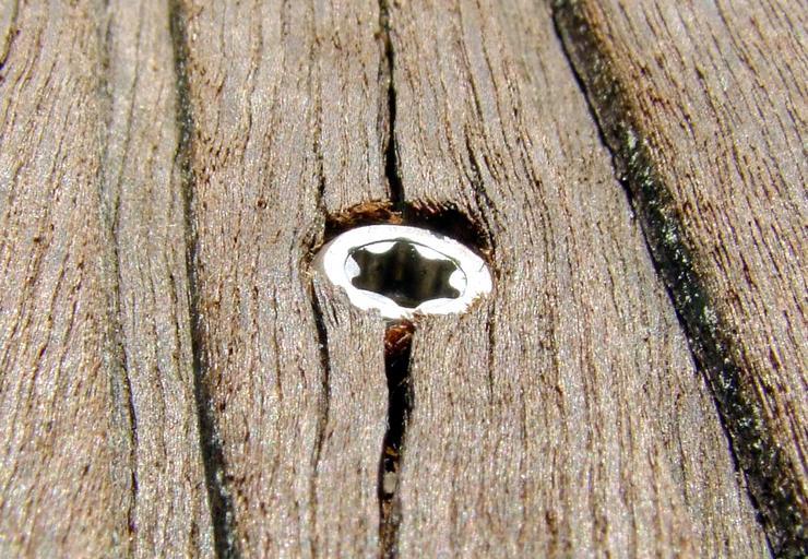 Keywords: wood screw brown metal screw head