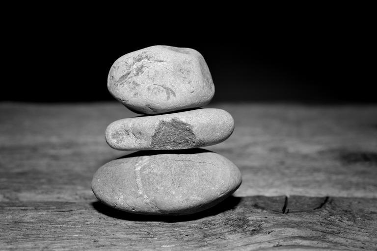 Keywords: wood stones stone tower stack balance silent rest black and white recording