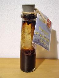 Keywords: Wood tar.jpg Author PrzemekL A bottle containing wood tar A souvenir from the village Losie in Poland The main use of this substance is to treat skin problems 2005-10-15 own assumed PrzemekL en Pine tar pl Dziegieć Tar Souvenirs of Poland