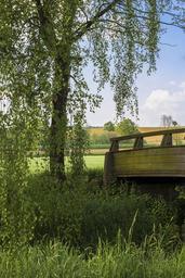 Keywords: wooden bridge bridge transition tree nature landscape green mood atmosphere spring grass