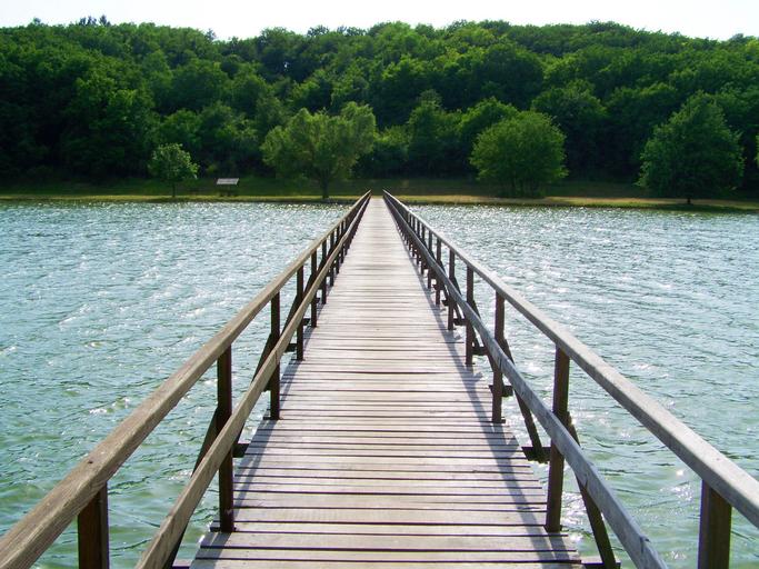 Keywords: wooden bridge over the pond erdősmároki pond hungary