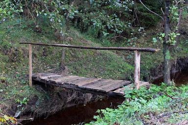 Keywords: wooden bridge web wood boardwalk nature water transition away bach water running wooden boards grass forest green commercial way