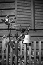 Keywords: wooden fence flowers pot village house home traditional slovakia garden cottage