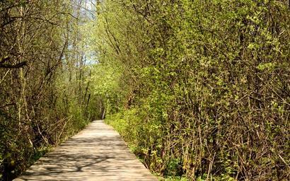 Keywords: wooden track away web nature wood planks plank road trail nature reserve scrub branches wild hedge wild growth wilderness hedge environment biological course atmosphere