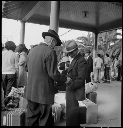 | Keywords: Woodland, California. Evacuees of Japanese ancestry waiting at the railroad station for the special . . . - NARA - 537807.jpg Scope and content The full caption for this photograph reads Woodland California Evacuees of Japanese ancestry waiting at the railroad station for the special train tha will take them from their home town to the Merced Assembly center 125 miles away General notes 537807 Local identifier 210-G-C495 Department of the Interior War Relocation Authority 02/16/1944 - 06/30/1946 NARA-Author Lange Dorothea 1895-1965 Photographer 1372774 <br /> Still Picture Records Section Special Media Archives Services Division NWCS-S National Archives at College Park 8601 Adelphi Road College Park MD 20740-6001 1942-05-20 Record group Record Group 210 Records of the War Relocation Authority 1941 - 1989 Record group ARC 537 Central Photographic File of the War Relocation Authority compiled 1942 - 1945 Series ARC 536000 File unit File unit ARC Variant control numbers NAIL Control Number NWDNS-210-G-C495 Other versions <gallery> File Woodland _California _Evacuees_of_Japanese_ancestry_waiting_at_the_railroad_station_for_the_special_ _ _ _-_NARA_-_537807 tif tif File Woodland _California _Evacuees_of_Japanese_ancestry_waiting_at_the_railroad_station_for_the_special_ _ _ _-_NARA_-_537807 jpg jpg </gallery> NARA-cooperation PD-USGov Japanese American internment processing in Woodland California Dorothea Lange |