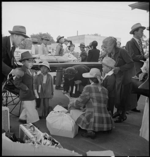 | Keywords: Woodland, California. Families of Japanese ancestry with their baggage at railroad station awaiting . . . - NARA - 537806.jpg Scope and content The full caption for this photograph reads Woodland California Families of Japanese ancestry with their baggage at railroad station awaiting arrival of special train which will take them from their home town to the Merced Assembly center 125 miles away General notes 537806 Local identifier 210-G-C494 Department of the Interior War Relocation Authority 02/16/1944 - 06/30/1946 NARA-Author Lange Dorothea 1895-1965 Photographer 1372774 <br /> Still Picture Records Section Special Media Archives Services Division NWCS-S National Archives at College Park 8601 Adelphi Road College Park MD 20740-6001 1942-05-20 Record group Record Group 210 Records of the War Relocation Authority 1941 - 1989 Record group ARC 537 Central Photographic File of the War Relocation Authority compiled 1942 - 1945 Series ARC 536000 File unit File unit ARC Variant control numbers NAIL Control Number NWDNS-210-G-C494 Other versions <gallery> File Woodland _California _Families_of_Japanese_ancestry_with_their_baggage_at_railroad_station_awaiting_ _ _ _-_NARA_-_537806 tif tif File Woodland _California _Families_of_Japanese_ancestry_with_their_baggage_at_railroad_station_awaiting_ _ _ _-_NARA_-_537806 jpg jpg </gallery> NARA-cooperation PD-USGov Japanese American internment processing in Woodland California Dorothea Lange |