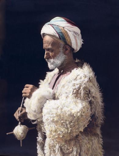 Keywords: wool spin hand labor schäfer shepherd man turban ramallah old