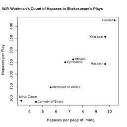 MAKE A MEME View Large Image Workman'sShakespearePlays.svg en Plot of W P Workman's Count of Hapax Legomena in Shakespeare's Plays as cited in the Catholic Encyclopedia http //www newadvent org/cathen/14727b htm Julius Cæsar 3 4 93 Comedy of Errors 4 5 88 Merchant of ...