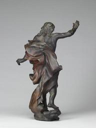 | Keywords: Workshop of Gian Lorenzo Bernini - The Risen Christ - Walters 542281 - View D.jpg In 1673 Bernini was commissioned by Pope Clement X to design gilded figures of the twelve apostles and the Risen Christ to crown the tabernacle of the Chapel of the Blessed Sacrament in St Peter's Basilica Working from Bernini's designs Giovanni Rinaldi made the models Girolamo Lucenti the bronze founder had problems casting the Risen Christ and the initial bronze cast had a flaw across its chest This cast now partially repaired and in the Walters' collection was left in a rough state The model was recast gilded and installed in St Peter's Christ's idealized body recalls ancient sculptures of the sun-god Apollo praised as having a perfect physique His striding pose is beautifully balanced while his ascent toward heaven is suggested by the deeply carved fluttering drapery seemingly responding to an invisible wind and creating a strong play of light and shadow Bernini was the greatest sculptor of his age He imbued figures of both metal and marble with an unsurpassed sense of life and motion between 1673 1674 Baroque bronze cm 44 accession number 54 2281 1418 Henry Walters Baltimore formerly in the Baltimore office of Henry Walters date and mode of acquisition unknown C Morgan Marshall date and mode of acquisition unknown Walters Art Museum Gift of C Morgan Marshall 1942 Going for Baroque The Walters Art Gallery Baltimore 1995-1996 Vatican Treasures Early Christian Renaissance and Baroque Art from the Papal Collections The Cleveland Museum of Art Cleveland 1998 A Magnificent Age Masterpieces from the Walters Art Museum Baltimore The Nelson-Atkins Museum of Art Kansas City; Mint Museum of Art Charlotte; The Walters Art Museum Baltimore 2002-2004 The Sculpture of Gianlorenzo Bernini Kimbell Art Museum Fort Worth 1982 The Taste of Maryland Art Collecting in Maryland 1800-1934 The Walters Art Gallery Baltimore 1984 The Allure of Bronze The Walters Art Gallery Baltimore 1995 place of origin Rome Italy Walters Art Museum license Baroque sculpture in the Walters Art Museum Sculptures by Gianlorenzo Bernini Media contributed by the Walters Art Museum needs category review |