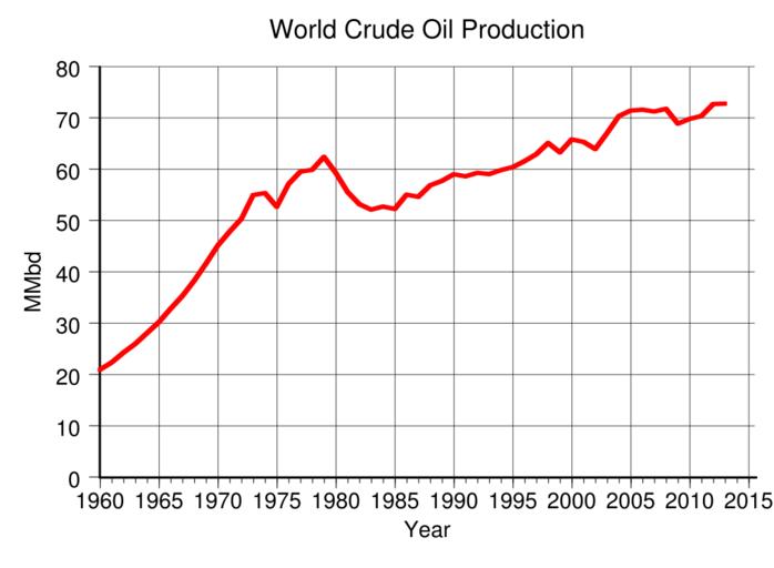 Keywords: World Crude Oil Production.svg en World oil production 1960-2013 Data source http //www opec org/library/Annual 20Statistical 20Bulletin/interactive/current/FileZ/Main htm Opec 2016-03-01 own Delphi234 other versions Generated with Wikimedia SVG Chart SVG Chart/box current annually cc-zero Oil production trends |