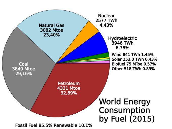 Keywords: World energy consumption by fuel.svg translate yes en World primary energy consumption by fuel based on data from BP Statistical Review of World Energy 2016http //www bp com/en/global/corporate/energy-economics/statistical-review-of-world-energy html Combustibles are reported in Mtoe nuclear and renewables that are used to produce electricity are reported in TWh The percentages though are based on Mtoe conversions and differ from comparisons that use actual energy 2014-06-25 own Delphi234 current annually cc-zero Energy use comparisons Energy statistics