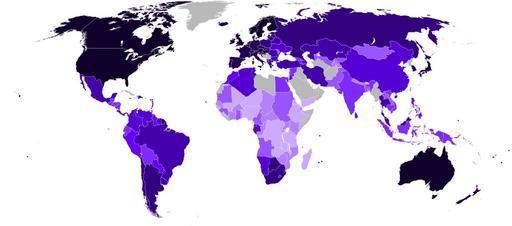 | Keywords: World map of countries by gross domestic product at purchasing power parity per capita in 2006 from the World Bank.svg  A world map of countries by gross domestic product at purchasing power parity per capita in 2006 from the World Bank Own Saturday the 15th March 2008 Andrew Davis Bsrboy ˘ Data refers to the year 2006 http //siteresources worldbank org/DATASTATISTICS/Resources/GDP_PPP pdf Gross Domestic Product Purchasing Power Parity and http //siteresources worldbank org/DATASTATISTICS/Resources/POP pdf Population courtesy of the World Bank 14th September 2007 ˘ Data consists of 159 countries including Macau and Hong Kong ˘ Data map uses 10 shades of colour purple ˘ Data is divided into 9 equal groups and 1 semi-equal group of wealth See below ˘ Top 9 groups consist of 16 countries and the last group consists of 15 Group 1 1-16 1 Luxembourg - 69 203 2 United States - 44 155 3 Macau - 43 765 4 Norway - 43 576 5 Ireland - 41 930 6 Iceland - 38 880 7 Hong Kong - 38 065 8 Switzerland - 37 922 9 Denmark - 36 351 10 Netherlands - 36 220 11 Austria - 35 560 12 Australia - 35 492 13 Finland - 35 195 14 Sweden - 35 161 15 Canada - 35 030 16 United Kingdom - 34 983 Group 2 17-32 17 Belgium - 34 712 18 France - 33 408 19 Singapore - 32 749 20 Japan - 32 385 21 Germany - 31 744 22 Italy - 30 654 23 Spain - 28 55 24 New Zealand - 26 738 25 Greece - 25 076 26 Slovenia - 24 164 27 South Korea - 23 800 28 Czech Republic - 22 792 29 Portugal - 21 942 30 Hungary - 19 585 31 Malta - 19 126 32 Estonia - 18 379 Group 3 33-48 33 Slovakia - 17 826 34 Seychelles - 17 430 35 Trinidad and Tobago - 17 014 36 Equatorial Guinea - 16 548 37 Lithuania - 16 220 38 Latvia - 15 876 39 Argentina - 15 795 40 Poland - 15 445 41 Saint Kitts and Nevis - 14 604 42 Antigua and Barbuda - 14 190 43 Croatia - 14 072 44 Mauritius - 13 451 45 Botswana - 13 088 46 Chile - 12 655 47 Russia - 11 974 48 South Africa - 11 960 Group 4 49-64 49 Malaysia - 11 674 50 Mexico - 11 532 51 Uruguay - 11 451 52 Costa Rica - 11 160 53 Bulgaria - 10 128 54 Romania - 10 091 55 Thailand - 9 331 56 Turkey - 9 073 57 Brazil - 9 054 58 Belarus - 9 035 59 Tunisia - 8 976 60 Kazakhstan - 8 853 61 Dominican Republic - 8 813 62 Tonga - 8 598 63 Iran - 8 567 64 Grenada - 8 546 Group 5 65-80 65 Panama - 8 371 66 Suriname - 8 358 67 Namibia - 8 141 68 Colombia - 7 967 69 People ™s Republic of China - 7 660 70 Ukraine - 7 642 71 Republic of Macedonia - 7 612 72 Venezuela - 7 503 73 Saint Lucia - 7 500 74 Belize - 7 478 75 Algeria - 7 376 76 Micronesia - 7 306 77 Dominica - 7 028 78 Saint Vincent and the Grenadines - 6 983 79 Azerbaijan - 6 888 80 Gabon - 6 750 Group 6 81-96 81 Peru - 6 624 82 Samoa - 6 462 83 Fiji - 6 401 84 Cape Verde - 6 230 85 Jordan - 5 988 86 Armenia - 5 798 87 Albania - 5 732 88 Lebanon - 5 641 89 El Salvador - 5 525 90 Philippines - 5 473 91 Kiribati - 5 287 92 Swaziland - 5 138 93 Sri Lanka - 5 081 94 Paraguay - 5 54 95 Morocco - 5 028 96 Guyana - 4 864 Group 7 97-112 97 Guatemala - 4 802 98 Egypt - 4 664 99 Ecuador - 4 606 100 Jamaica - 4 520 101 Indonesia - 4 130 102 Nicaragua - 4 095 103 Syria - 4 046 104 India - 3 827 105 Georgia - 3 823 106 Honduras - 3 668 107 Lesotho - 3 592 108 Vanuatu - 3 563 109 Vietnam - 3 384 110 Cambodia - 3 041 111 Bolivia - 2 984 112 Papua New Guinea - 2 686 Group 8 113-128 113 Angola - 2 678 114 Ghana - 2 660 115 Pakistan - 2 553 116 Mauritania - 2 500 117 Moldova - 2 489 118 Guinea - 2 439 119 Cameroon - 2 406 120 Sudan - 2 372 121 Mongolia - 2 353 122 Laos - 2 329 123 Djibouti - 2 293 124 Uzbekistan - 2 247 125 Bangladesh - 2 217 126 Solomon Islands - 2 149 127 Kyrgyzstan - 2 024 128 The Gambia - 2 019 Group 9 129-144 129 Comoros - 2 016 130 Zimbabwe - 2 011 131 Senegal - 1 850 132 Haiti - 1 711 133 CĂ´te d ™Ivoire - 1 702 134 Nepal - 1 596 135 Chad - 1 551 136 Uganda - 1 519 137 Togo - 1 511 138 Tajikistan - 1 454 139 Mozambique - 1 345 140 Republic of the Congo - 1 342 141 Burkina Faso - 1 322 142 Kenya - 1 316 143 Central African Republic - 1 286 144 Rwanda - 1 287 Group 10 145-159 145 Ethiopia - 1 192 146 Benin - 1 175 147 Nigeria - 1 166 148 Zambia - 1 098 149 Eritrea - 1 096 150 Mali - 1 090 151 Yemen - 992 152 Madagascar - 972 153 Sierra Leone - 871 154 Guinea-Bissau - 862 155 Niger - 810 156 Democratic Republic of the Congo - 751 157 Tanzania - 751 158 Malawi - 731 159 Burundi - 729 SVG maps of the world without Antarctica Maps needing South Sudan political boundaries |