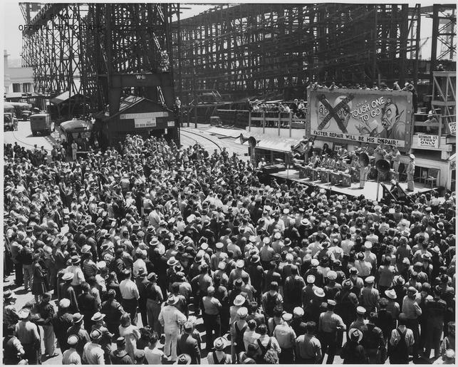| Keywords: "World War II bond rally , AJC Band, from Hamilt6on Field at US Navy Yard, Mare Island, Ca." - NARA - 296895.tif Scope and content General notes 296895 Local identifier Department of Defense Department of the Navy Mare Island Naval Shipyard Office of the Commander Office of the Shipyard Historian 1976 - ca 1996 NARA's Pacific Region San Bruno NRHAS 1000 Commodore Drive San Bruno CA 94066-2350 1945-06-26 Record group Record Group 181 Records of Naval Districts and Shore Establishments 1784 - 2000 Record group ARC 510 Subject Files compiled 1976 - 1996 documenting the period ca 1854 - ca 1996 Series ARC 296821 File unit World War II Activities 1939 - 1945 File unit ARC 296893 Variant control numbers NAIL Control Number NRHS-181-MINSYHISTSUBJ-WWIIACTIV-WWII 2 yes Other versions <gallery> File World_War_II_bond_rally_ _AJC_Band _from_Hamilt6on_Field_at_US_Navy_Yard _Mare_Island _Ca _-_NARA_-_296895 tif tif File World_War_II_bond_rally_ _AJC_Band _from_Hamilt6on_Field_at_US_Navy_Yard _Mare_Island _Ca _-_NARA_-_296895 jpg jpg </gallery> NARA-cooperation PD-USGov World War II in 1945 Mare Island Naval Shipyard War bonds Political rallies 1945 in California Propaganda cartoons 1940s political cartoons of the United States NARA TIF images with categorized JPGs |