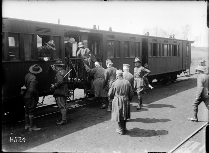 | Keywords: the great war thegreatwar great war greatwar world war one worldwarone world war i worldwari wwi first world war firstworldwar new zealand expeditionary force newzealandexpeditionaryforce nzef prisoners of war prisonersofwar pow prisoner of war prisonerofwar train blackandwhite monochrome black and white Wounded German prisoners boarding a train under New Zealand Army supervision during World War I. Photograph taken 22 April 1918 by Henry Armytage Sanders. Inscriptions: Inscribed - Photographer's title on negative -bottom left: H524. Quantity: 1 b&w original negative(s). Physical Description: Dry plate glass negative 4.75 x 6.5 inches Wounded German prisoners boarding a train, Louvencourt, France. Royal New Zealand Returned and Services' Association :New Zealand official negatives, World War 1914-1918. Ref: 1/2-013142-G. Alexander Turnbull Library, Wellington, New Zealand. natlib.govt.nz/records/22793358 Wounded German prisoners boarding a train under New Zealand Army supervision during World War I. Photograph taken 22 April 1918 by Henry Armytage Sanders. Inscriptions: Inscribed - Photographer's title on negative -bottom left: H524. Quantity: 1 b&w original negative(s). Physical Description: Dry plate glass negative 4.75 x 6.5 inches Wounded German prisoners boarding a train, Louvencourt, France. Royal New Zealand Returned and Services' Association :New Zealand official negatives, World War 1914-1918. Ref: 1/2-013142-G. Alexander Turnbull Library, Wellington, New Zealand. natlib.govt.nz/records/22793358 |