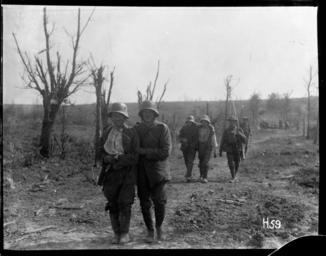 Keywords: blackandwhite monochrome photo border outdoor black and white Wounded German prisoners, escorted by New Zealand soldier, walking along a dirt road near Messines. Photograph taken 8 June 1917 by Henry Armytage Sanders. Inscriptions: Inscribed - Photographer's title on negative -bottom right: H59. Quantity: 1 b&w original negative(s). Physical Description: Dry plate glass negative 4 x 5 inches Wounded prisoners coming in near Messines, Western Front. Royal New Zealand Returned and Services' Association :New Zealand official negatives, World War 1914-1918. Ref: 1/2-012770-G. Alexander Turnbull Library, Wellington, New Zealand. natlib.govt.nz/records/23093592 Wounded German prisoners, escorted by New Zealand soldier, walking along a dirt road near Messines. Photograph taken 8 June 1917 by Henry Armytage Sanders. Inscriptions: Inscribed - Photographer's title on negative -bottom right: H59. Quantity: 1 b&w original negative(s). Physical Description: Dry plate glass negative 4 x 5 inches Wounded prisoners coming in near Messines, Western Front. Royal New Zealand Returned and Services' Association :New Zealand official negatives, World War 1914-1918. Ref: 1/2-012770-G. Alexander Turnbull Library, Wellington, New Zealand. natlib.govt.nz/records/23093592 |