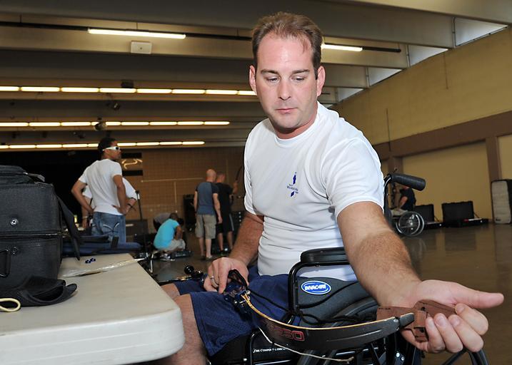 Keywords: Wounded Warrior Pacific Trials 121112-N-IT566-002.jpg en Hospital Corpsman 2nd Class Ret Joseph Derbak assemblies his recurve bow as he prepares to practice for the archery competition during the Wounded Warrior Pacific Trials at Joint Base Pearl Harbor-Hickam on Nov 12 Nearly 50 seriously wounded ill and injured Sailors and Coast Guardsmen from across the country are going head-to-head in archery cycling track and field shooting sitting volleyball swimming and wheel chair basketball for one of 35 places on the 2013 Warrior Games Navy-Coast Guard team U S Navy Photo by Mass Communication Specialist 2nd Class David Kolmel 2012-11-12 Petty Officer 2nd Class David Kolmel https //www dvidshub net/image/783573 121112-N-IT566-002 2012-11-15 21 52 PEARL HARBOR HI US PD-USGov-Military-Navy 2012 in Pearl Harbor Sports at Pearl Harbor Archery in the United States Wounded Warrior 2012 Images from DoD uploaded by Fæ |