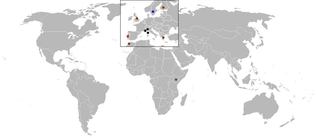| Keywords: WRC-1976.png Map of World Rally Championship rallies held in 1976 Color coding is black for tarmac events brown for gravel blue for snow/ice and red for mixed surface events 2007-03-27 Josh Baumgartner Josh 16 15 27 March 2007 UTC Public domain 1976 in auto racing World Rally Championship maps |