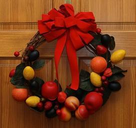 Keywords: wreath christmas fruit artificial manufactured red bow ribbon xmas