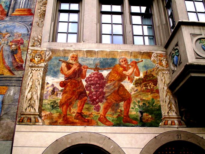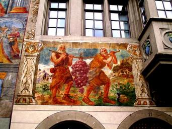 Keywords: wreath historically mural old town core facade window arcade arches stein am rhein schaffhausen switzerland