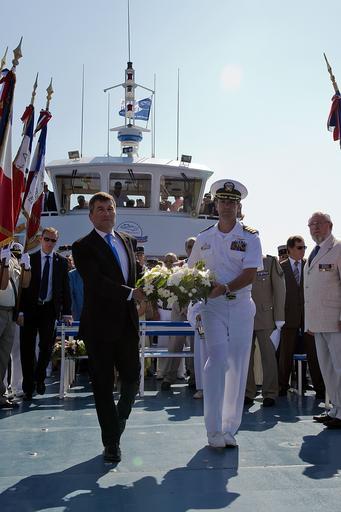 Keywords: Wreath-laying ceremony 130815-N-EZ054-029.jpg en U S Ambassador to France and Monaco Charles H Rivkin left and Capt Craig Clapperton commanding officer of the U S 6th Fleet flagship USS Mount Whitney LCC 20 carry a wreath during a wreath-laying ceremony in honor of the 69th anniversary celebration of allied troops landing in Provence during World War II The visit serves to continue U S 6th Fleet efforts to build global maritime partnerships with European nations and improve maritime safety and security U S Navy photo by Mass Communication Specialist Seaman Luis R Chavez Jr /Released 2013-08-15 Seaman Luis Chavez https //www dvidshub net/image/996386 130815-N-EZ054-029 2013-08-15 19 42 THEOULE-SUR-MER FR PD-USGov-Military-Navy USS Mount Whitney LCC-20 Images from DoD uploaded by Fæ |