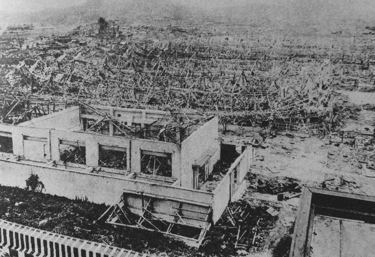 | Keywords: Wreck of Mitsubishi Nagasaki dockyard.JPG ja 三菱長崎 船 船型試験場の残骸 1945-08 アサヒグラフ 1952年8 6日号 author other versions Custom license marker 2014 11 03 PD-Japan-oldphoto Uploaded with UploadWizard Mitsubishi Heavy Industries Nagasaki Shipyard Machinery Works Nagasaki in ruins |