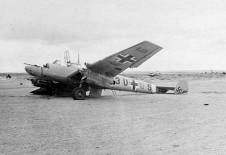 Keywords: Wrecked Me 110 of ZG 26 in North Africa c1942.jpg A wrecked German Messerschmitt Bf 110 E-1 aircraft at Fuka Egypt The aircraft in front had been assigned to ZG 26 26th Destroyer Wing <br>Note Photo 022189 shows an earlier D -3 model with the same code 3U+GS at El Gazala Libya in December 1941 - compare the different size and place of the white MTO fuselage band 025282 1942-11-13 Australian armed forces Image copyright Copyright expired - public domain thumb left PD-Australia Messerschmitt Bf 110 Fliegerführer Afrika Zerstörergeschwader 26 Black and white photographs |