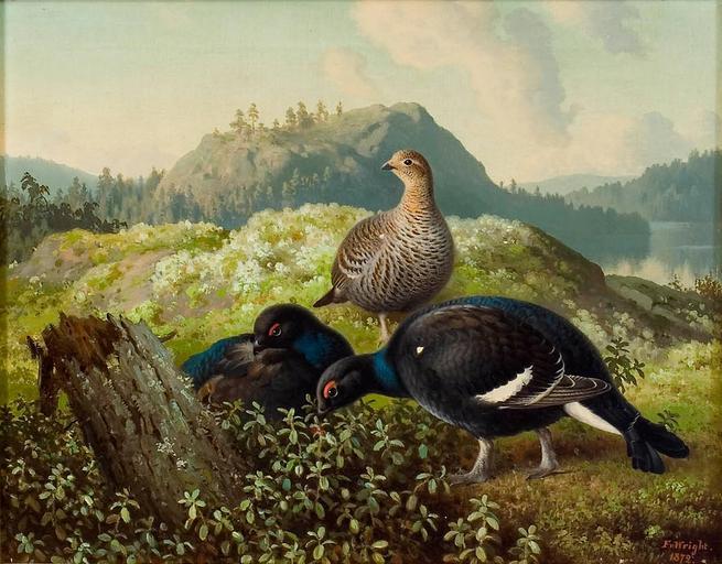 Keywords: Wright Ferdinand Black Grouses 1872.jpg en WRIGHT Ferdinand von Black Grouses 1872 <br>Orrar Teeriä Oil on canvas 40x50 cm http //www bukowskis fi/iframe php ino 1 page 31 op showcat p 3 id 50625 ret aWZyYW1lLnBocD9pdGVtcz0zJnBhZ2U9MzEmb3A9c2hvd2NhdCZhbXQ9MjAmcD0yJnN0YXJ0PTAmZGlzcGxheVR5cGU9JmtleXdvcmRzW109d3JpZ2h0Jg Bukowskis International Autumn Auction 138 Creator Ferdinand von Wright 1872 PD-old-100 Black Grouse in art Paintings of birds 1872 paintings Ferdinand von Wright Images from Bukowskis |