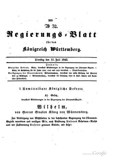 | Keywords: Württemberg Regierungsblatt 1842 385.png  Württemberg Regierungsblatt 1842_ png 384 386 Regierungs-Blatt für das Königreich Württemberg vom Jahr 1842 chBGAAAAcAAJ 1842 Kingdom of Württemberg PD-old-70-1923 De Königreich Württemberg Regierungsblatt 1842  |
