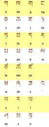 | Keywords: Wylie Consonants.png Wylie transliteration of Tibetan script consonants <br> Source print screen<br> Date September 2005 <br> Author --Immanuel Giel 10 08 26 September 2005 UTC <br> Other versions none<br> 2005-09-26 own assumed Immanuel Giel de Umschrift nach Wylie en Wylie transliteration Tibetan_writing Alphabet charts |