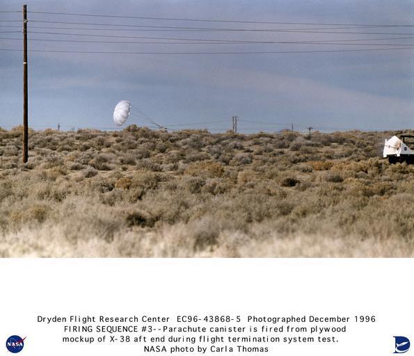 View Original:X-38,_Parachute_Canister_Fired_from_Plywood_Mockup_during_Flight_Termination_System_Test_DVIDS700816.jpg (1536x1321)