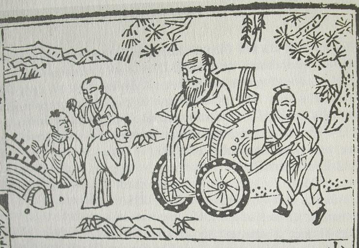 Keywords: Xiao er lun - Confucius and children.jpg en Confucius and children Note the handcart that is used to transport the sage - presumably the mode of transport familiar to the early-Qing 1680 artist zh 孔子問答 小兒論 The top of the first page of Xiao er lun Dialogue of Confucius with a child from the collection Wanbao yaoxue xuzhi; aotou zazu daquan Treasury of essential knowledge for children; the complete character miscellany of a prize-winning Hanlin scholar Reproduced in D E Mungello The Curious Land from a copy of the original edition in the Herzog August Bibliothek Wolfenbüttel Cod Guelf 117 1 Extrav An unknown Chinese artist 1680 Confucius 1680 Rickshaws in China Wheelbarrows in art People in wheelchairs PD-old-100 |