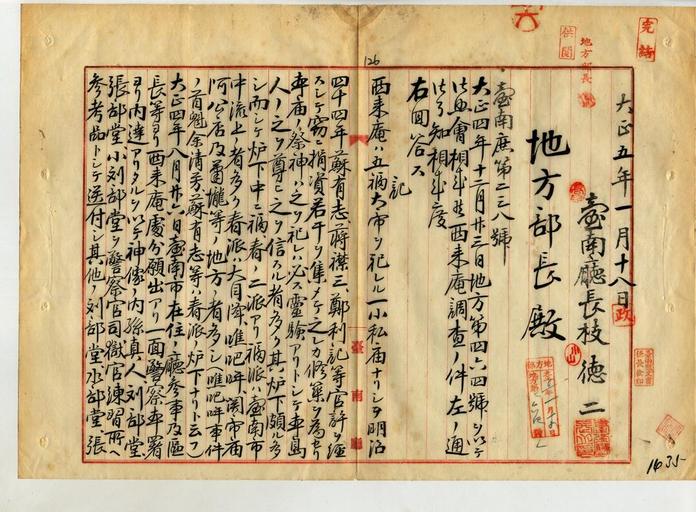 Keywords: Xilai Temple after Tapani incident document 02.jpg zh-tw Documents about Xilai Temple after the Tapani incident 1916 http //www th gov tw/epaper/site/page/33/217 as shown on manuscript other versions Custom license marker 2016 11 16 PD-Japan-exempt PD-Japan History of Tainan Ta-pa-ni Incident |