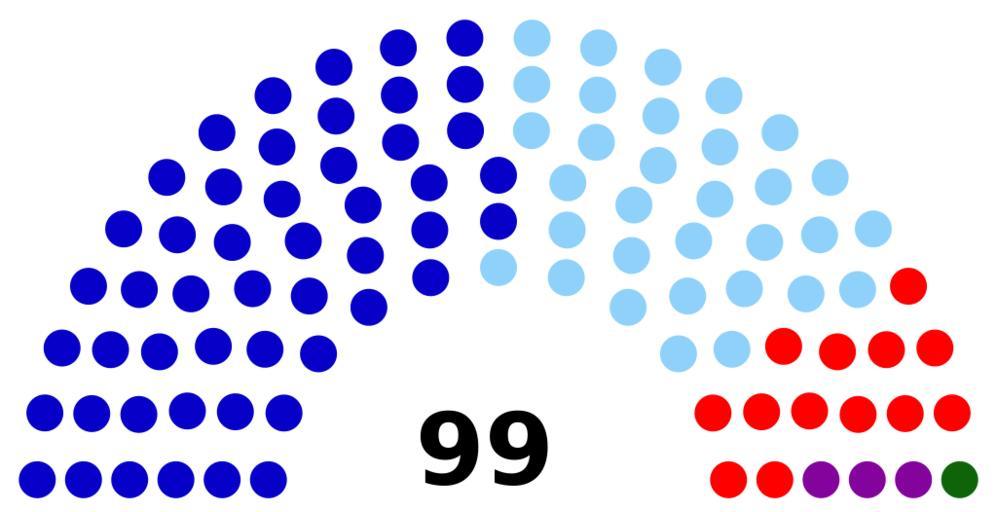 Keywords: XLVIII Legislatura de la Cámara de Representantes de Uruguay.svg 0700C9 Frente Amplio 50 seats 90D1FC Partido Nacional 32 seats FF0000 Partido Colorado 13 seats 83039C Partido Independiente 3 seats 0F6309 Unidad Popular 1 seat 2015-12-16 own Santga other versions cc-zero Election apportionment diagrams of Uruguay Uploaded with UploadWizard |