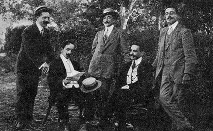 Keywords: Xornalistas, escritores e artistas en Ferrol 1909.jpg gl Xornalistas escritores e artistas en Ferrol fotografía en Vida Gallega 1909 <br /><br /><center>De esquerda a dereita </center><br /><br /><center>Eduardo Sánchez Miño Vicente Díaz González Wenceslao Fernández Flórez Joaquín Arias de Miranda e José Fitor Cabot </center> 1909 http //galiciana bibliotecadegalicia xunta es Galiciana Vida Gallega 11-1909 p 34 other versions Custom license marker 2016 06 30 PD-Scan PD-old-80 Journalists from Galicia Spain Male writers from Galicia Spain |