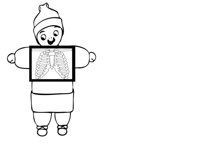 Keywords: xray chest ribcage torso stay puft marshmellow man white body medical skeleton bobble hat warm winter padded clothes coat happy smile