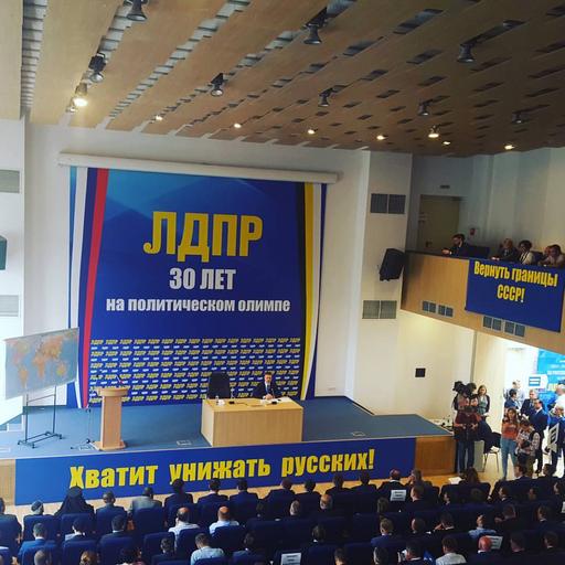 | Keywords: XXVIII Съезд ЛДПР (2016) фото 5.jpg en XXVIII Congress of the party LDPR Moscow June 28 2016 the Institute of World Civilizations Slogans Stop humiliating Russian return the borders of the USSR ru 29 Съезд па тии ЛДПР осква 28 июня 2016 Институт ми овых цивилизаций Лозунги Хватит унижать Русских Ве нуть г аницы СССР 2016-06-28 own Dgeise other versions ru wikipedia Dgeise cc-by-sa-4 0 June 2016 in Moscow LDPR | ||||
